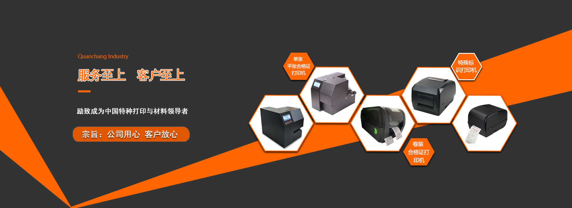 QUANCHANG權昌?特種打印與材料領域,為客戶創造價值為宗旨,產品線涉及不干膠打印機、合格證打印機、吊牌打印機、洗標打印機、打印耗材等領域。除了標準打印機以外,憑借強大的生產能力,我司還能夠為客戶提供非標定制行業特種打印機。與此同時,條碼標簽代印服務也是我司的主營業務之一,在中國主要的工業集中區域城市,都有工廠使用到我司的產品。寬廣的產品線以及從設計到售后全方位的服務,使我司可以為客戶提供一站式解決方案...